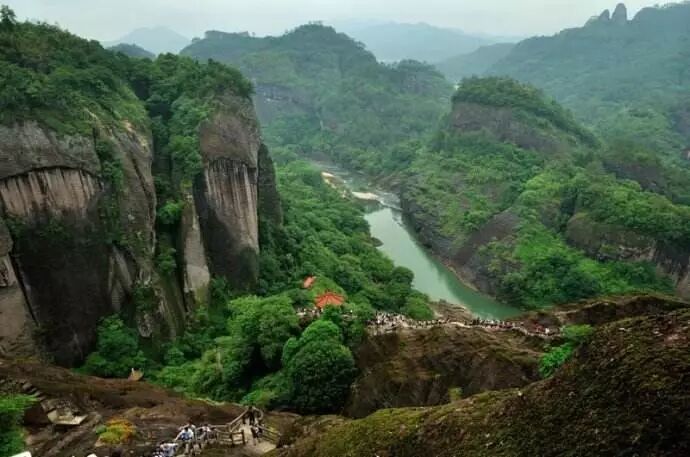 九曲溪全長62.8公里。進入風景區(qū)的一段河流形成深切河曲,使9.5公里長的河流,直線距離僅5公里,曲率達1.9。九曲溪水流清澈,水源充沛,水質達國家地面水Ι類標準。 03大紅袍景區(qū)